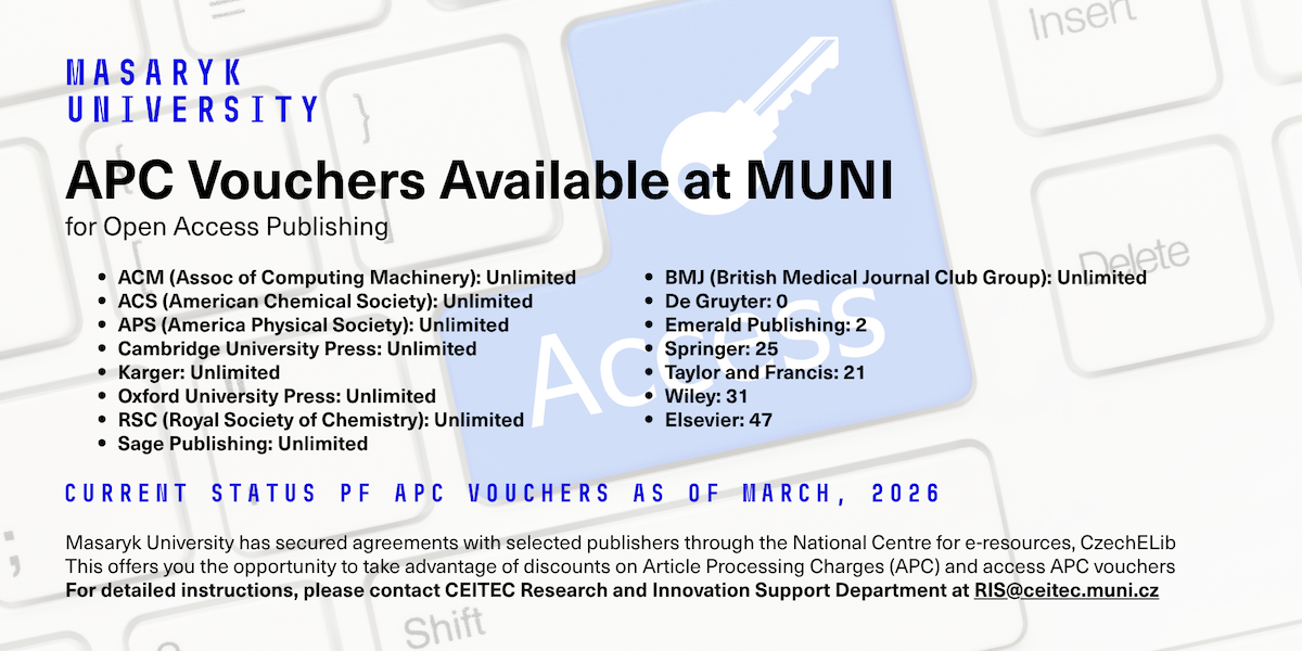 Information about the number of allocated tokens (APC vouchers for publishing in Open Access mode) for Masaryk University for the year 2026 is available.
